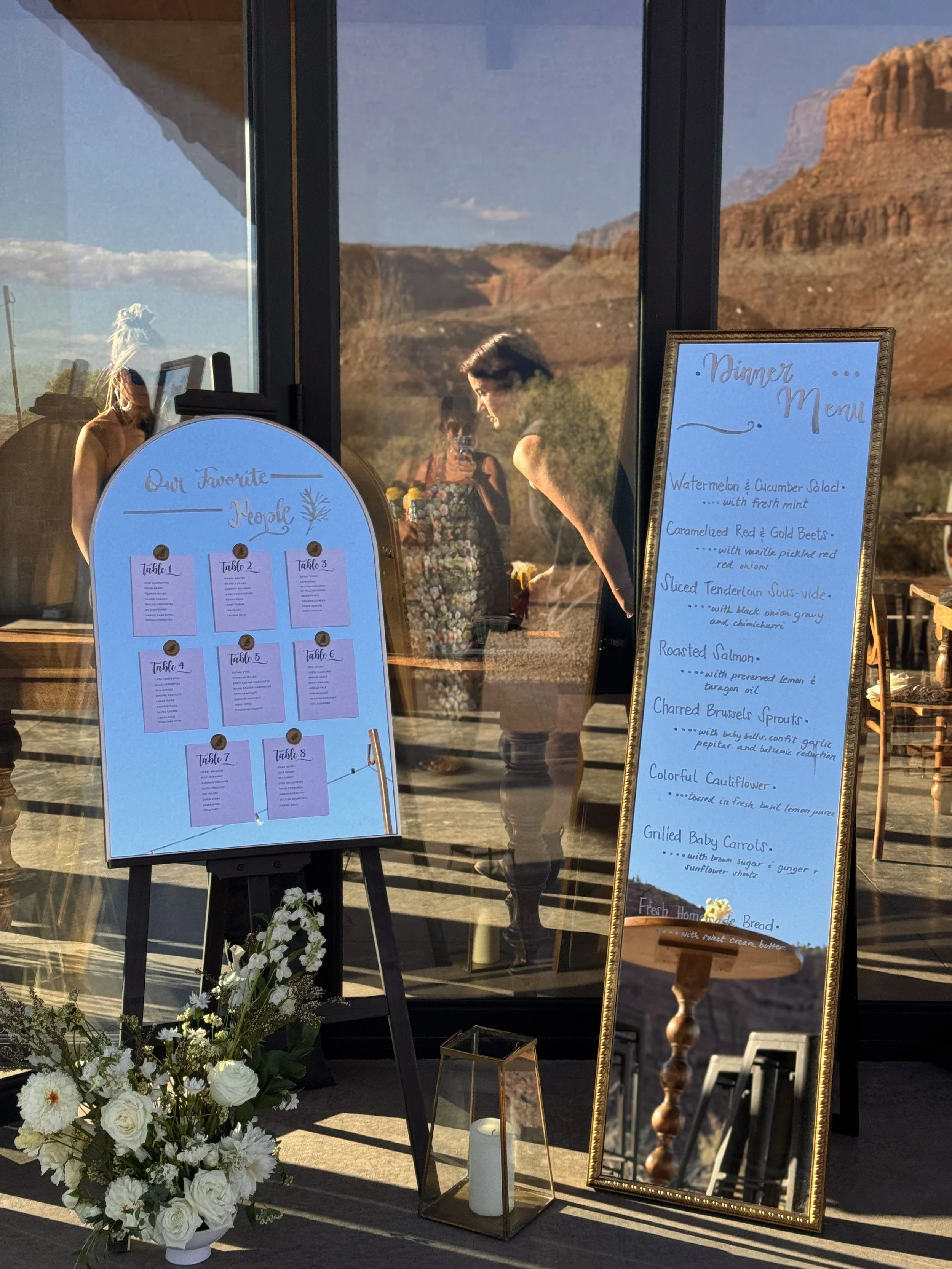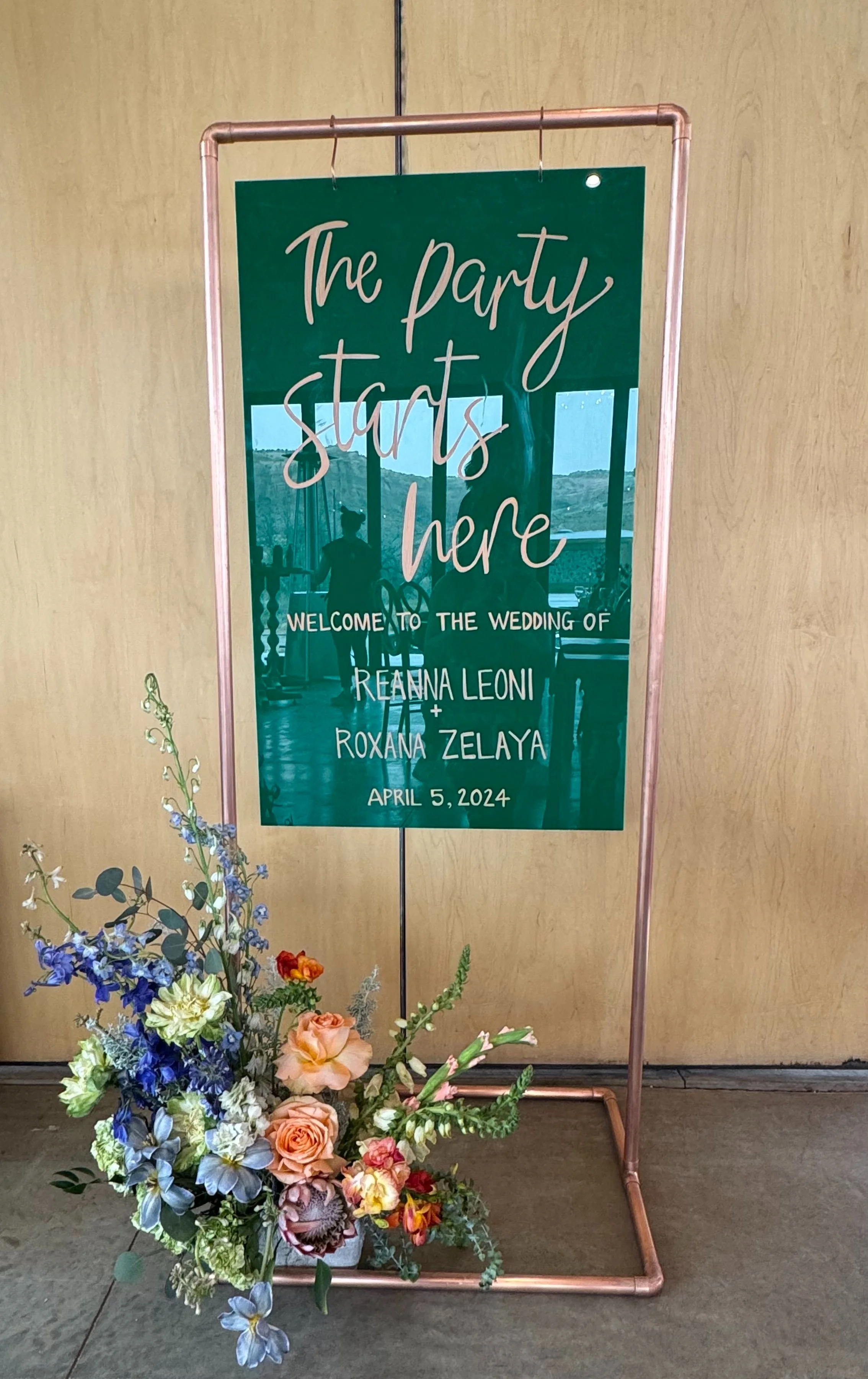 Custom Signage is an add-on offering to your florals. Our goal is to streamline your event design process and help reduce the stress of planning by offering multiple services under one room with one cohesive aesthetic. If you are interested in learning more about event design, please let us know! We’d be happy to chat with you about that!