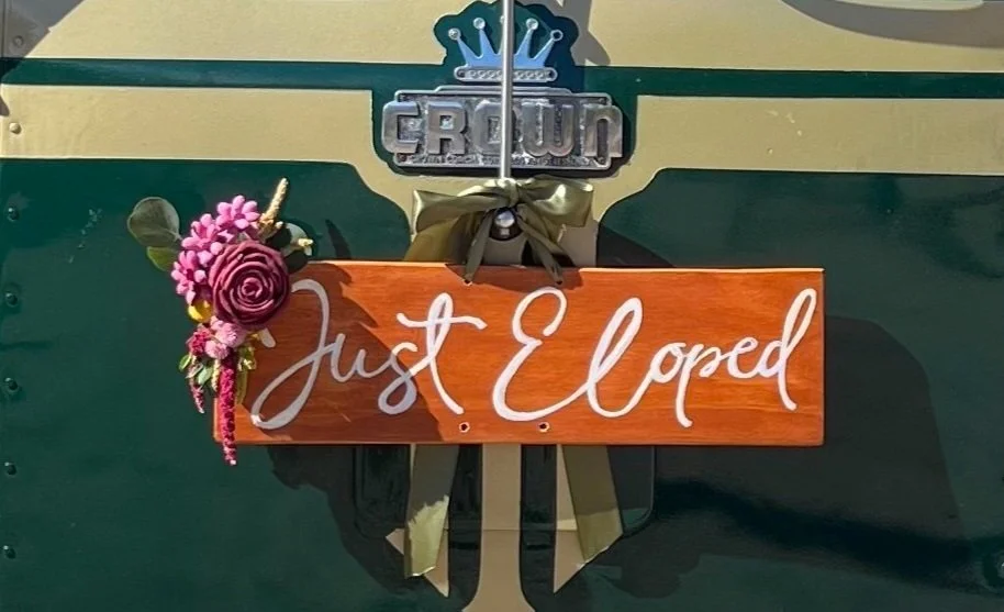 Just Married! (or Eloped!) Sign for backpack, spare tire, or grill