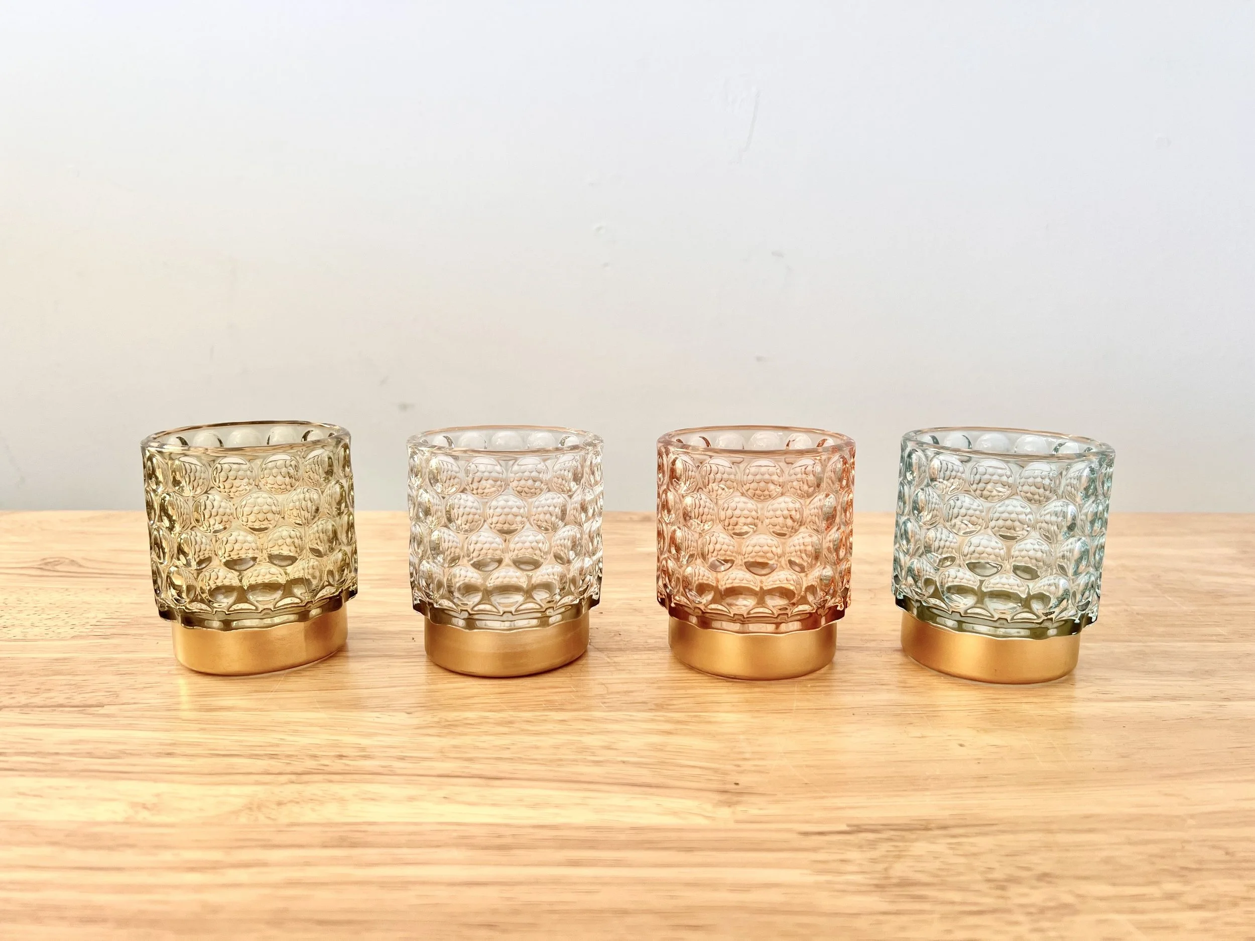 We have a large selection of glass votives to choose from to hold the twinkling tea lights