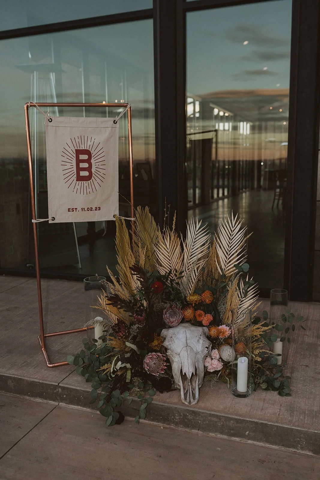 perfect for the Boho Bride, we can use our faux pampas grass in a number of creative ways. These budget-friendly rentals are customized to accommodate your color palette using faux, dried, and fresh ingredients.